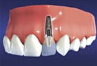 An implant post is surgically placed where the tooth is missing. In a few months bone will fuse to the implant.